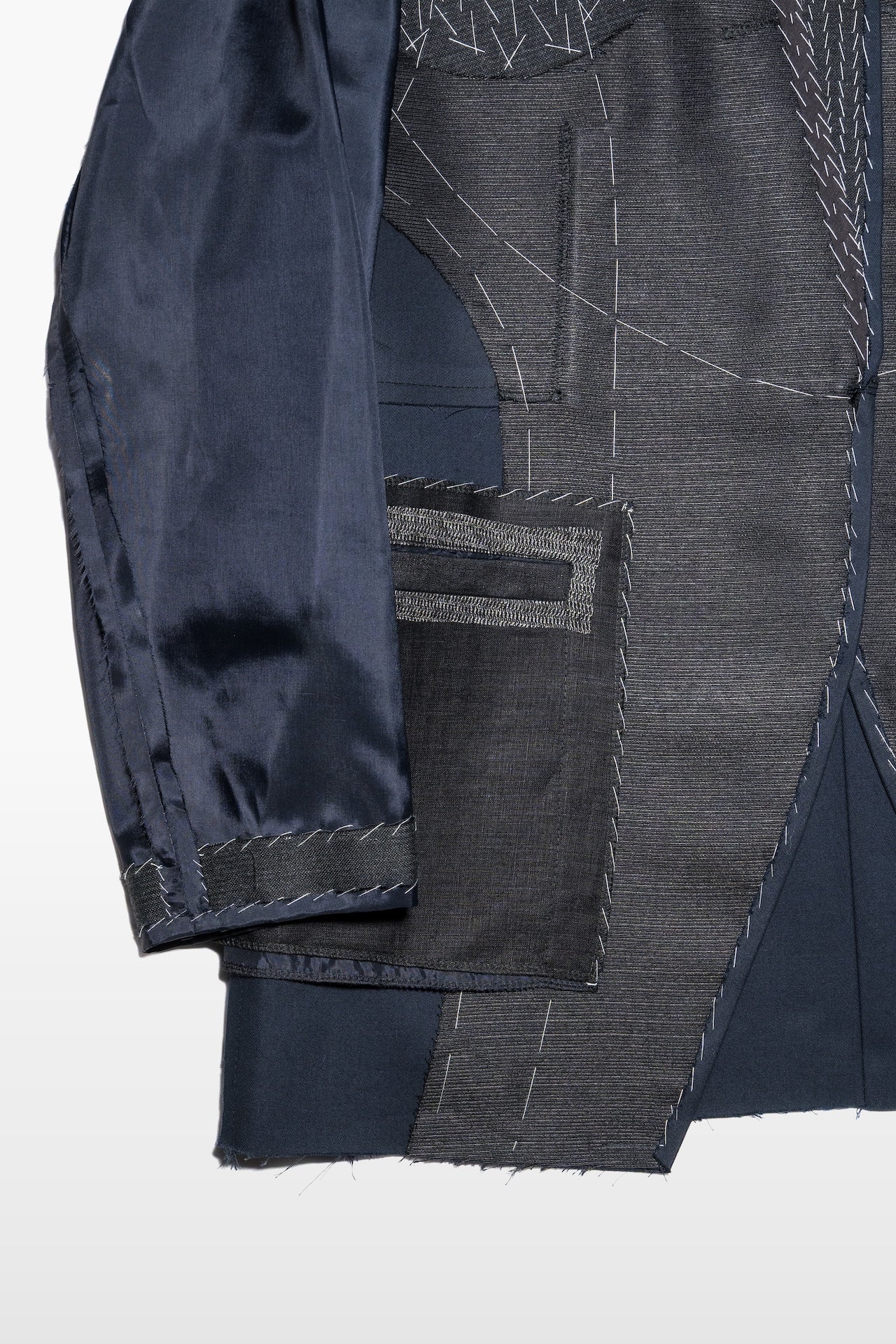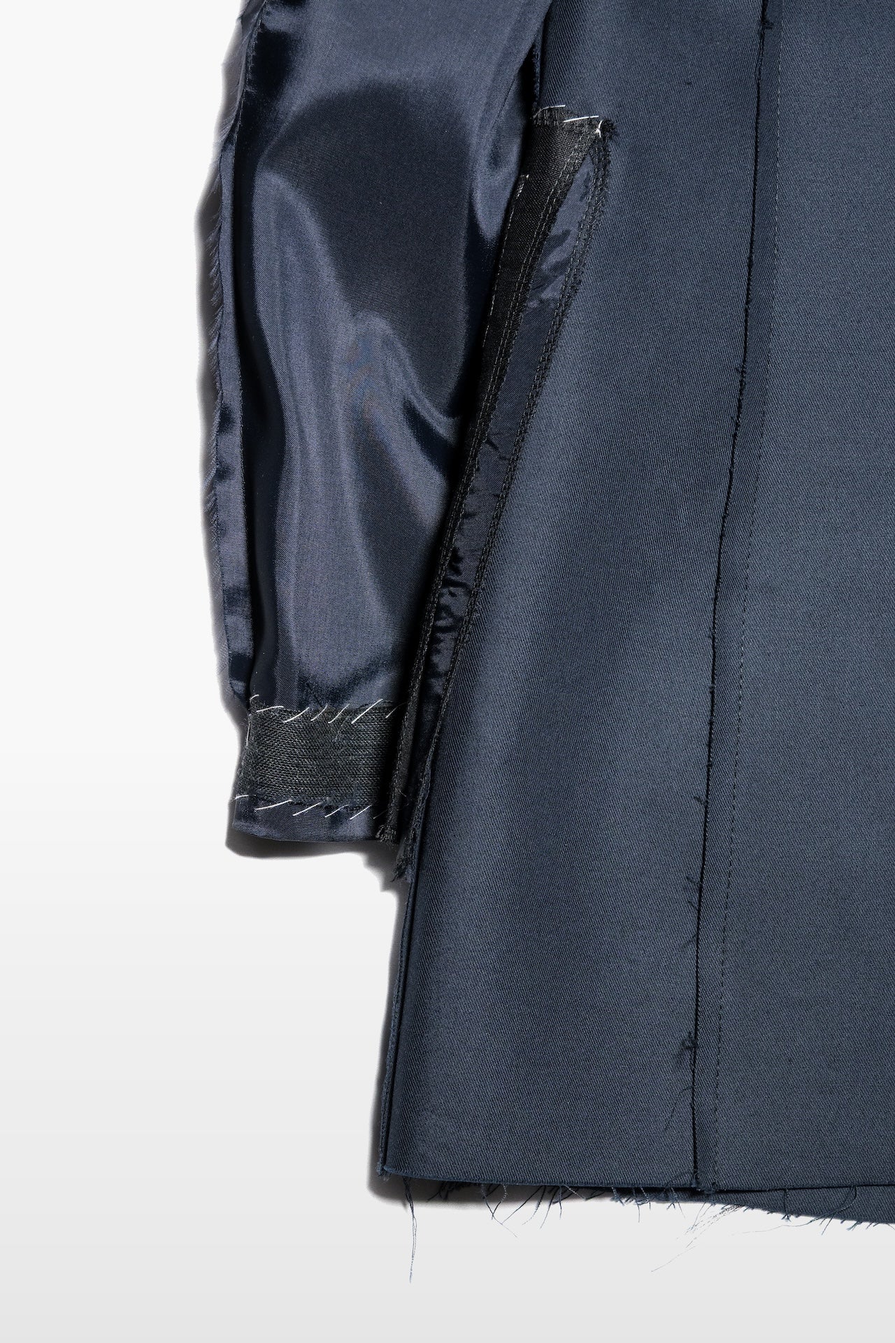 • One button blazer, side welt pockets, fully lined. Inside-out canvas construction, hand stitched horsehair details