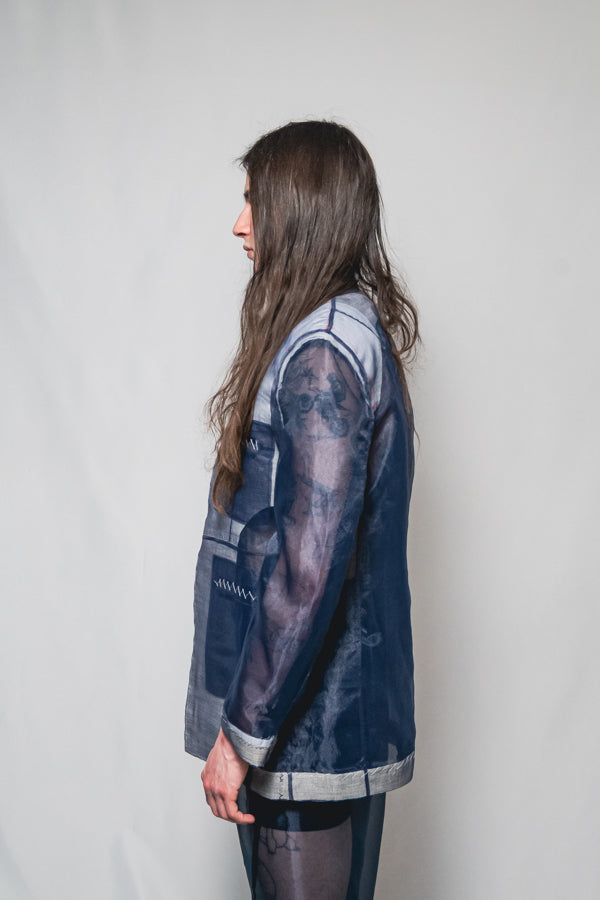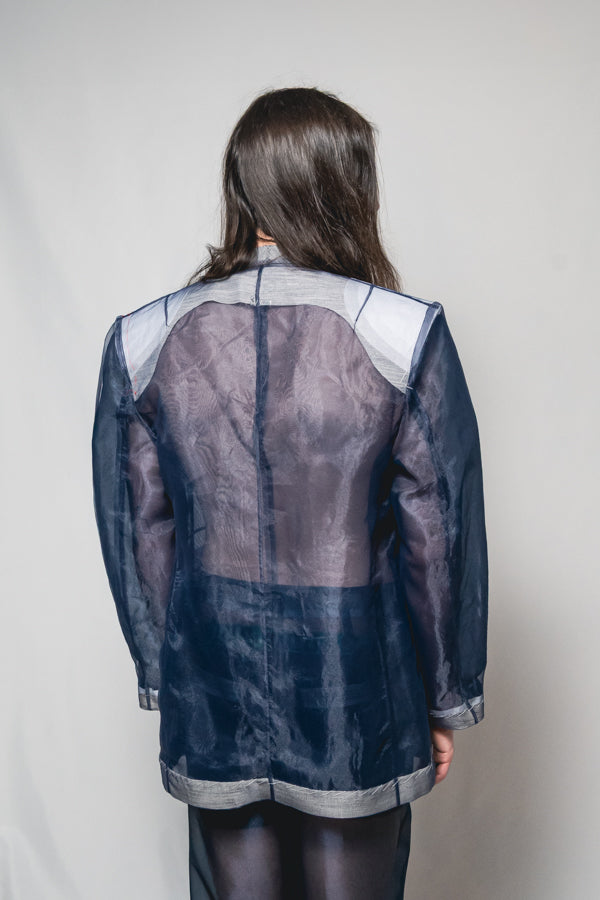 - Liqui-Liqui blazer, 4 front pockets, round collar. Fluid fit, soft construction, fully lined.